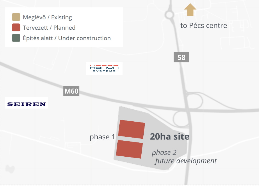 Az IGPark Pécs 20 hektár ipari területet foglal magában egy ipari zónában. A teljes terület 100 000 m² beépíthető potenciállal rendelkezik. Az első fázis építési engedélye előkészítés alatt áll, így a kivitelezés hamarosan megkezdődhet. A terület közvetlen közelében olyan autóipari beszállítók találhatók, mint a Hanon és a Seiren.